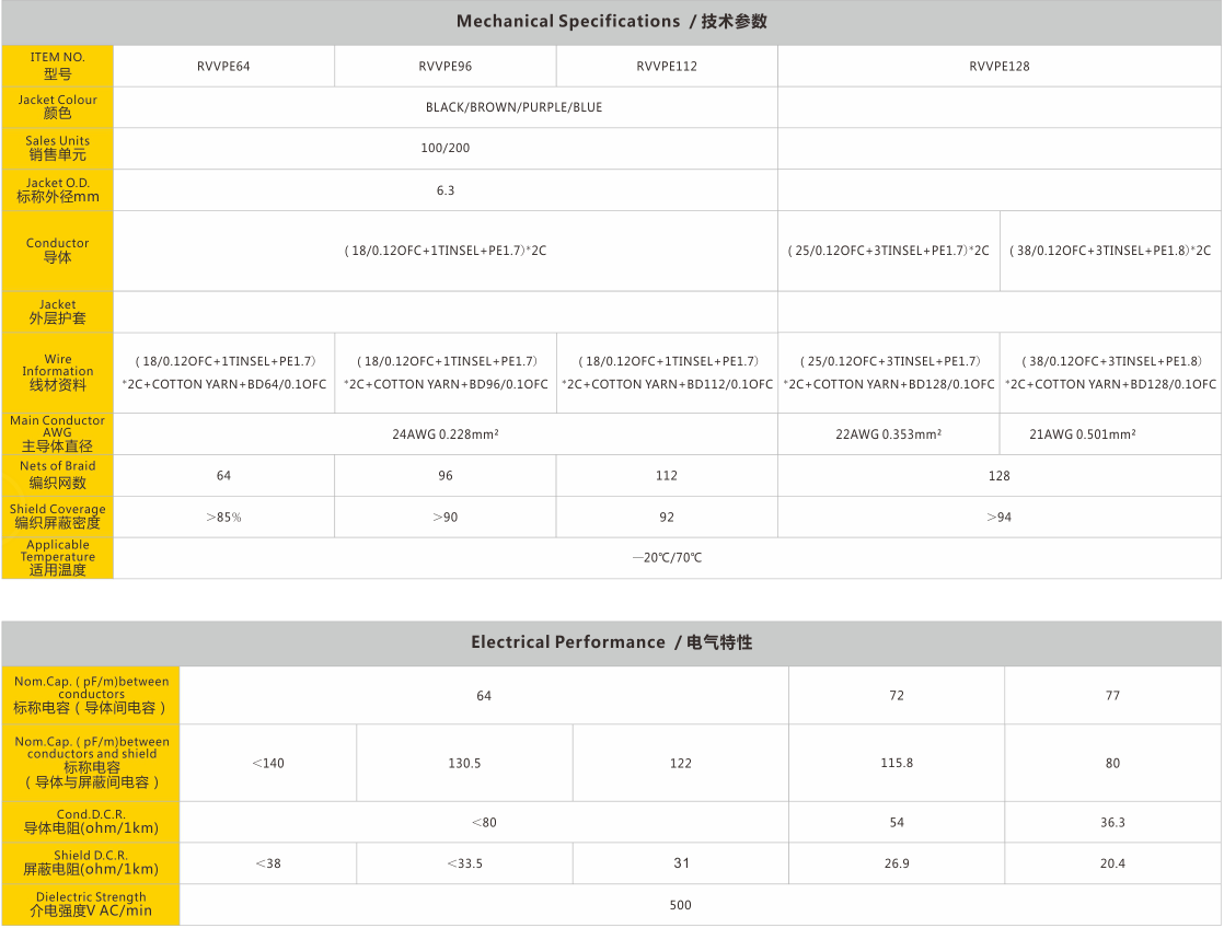 绝缘采用介电系数低的PE材质,满足低电容的要求,同时也增强芯线的抗拉强度